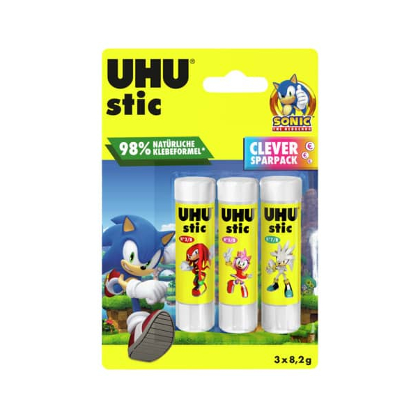 Der Klebestift klebt stark, schnell und dauerhaft. Er lässt sich einfach auftragen, ist sehr ergiebig und natürlich kalt auswaschbar. Das emotionale Packungsdesign mit limitierter SONIC-Lizenz macht ihn zu einem echten Blickfang.