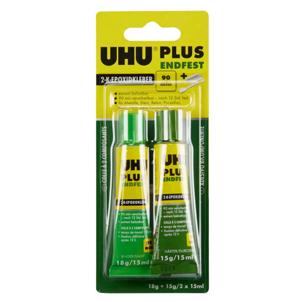 UHU Zweikomponentenkleber 45700 PLUS SCHNELLFEST, 35g, permanent | UHU Zweikomponentenkleber 45705 plus sofortfest, 35g, permanent | UHU Zweikomponentenkleber 45720 PLUS ENDFEST, 163g, permanent | UHU Zweikomponentenkleber 45585 PLUS ENDFEST, 25g, permanent | UHU Zweikomponentenkleber 45690 PLUS SCHNELLFEST, 885g | UHU Zweikomponentenkleber 45725 PLUS SCHNELLFEST, 27g, permanent | UHU Zweikomponentenkleber 47285 Creativ METALL, GLAS & KERAMIK, 15ml, permanent | Pattex Zweikomponentenkleber 9H PK6ST Zweikomponenten-Kleber, 2x12g, permanent | Pattex Zweikomponentenkleber 9H PK6FT Zweikomponenten Kleber, 2x12g, permanent | Pattex Zweikomponentenkleber 9H PRE7N Express Power, 48g, permanent |