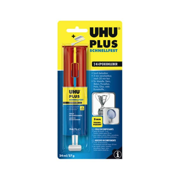 Vertrauen Sie auf die Qualität von UHU und machen Sie Ihre Projekte einfach und effektiv – kaufen Sie jetzt den Zweikomponentenkleber 45725 PLUS SCHNELLFEST!
