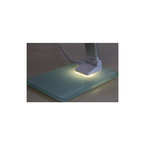• Farbe: weiß/metallgrau Die LED-Schreibtischleuchte POPY von Unilux kann über einen einzigen Sensorschalter am Fuß individuell eingestellt werden. Ein kurzer Druck genügt zur Einstellung der Farbtemperatur in 3 Stufen. Über einen anhaltenden Druck wird die Beleuchtungsstärke stufenlos reguliert. Eine zusätzliche Nachtlichtfunktion am Sockel macht die Leuchte flexibel, z.B. für den Einsatz auf dem Nachttisch oder im Kinderzimmer. POPY hat einen stabilen Glasfuß. Die Leuchte enthält eingebaute LED-Lampen. Die Lampen können nicht ausgetauscht werden.