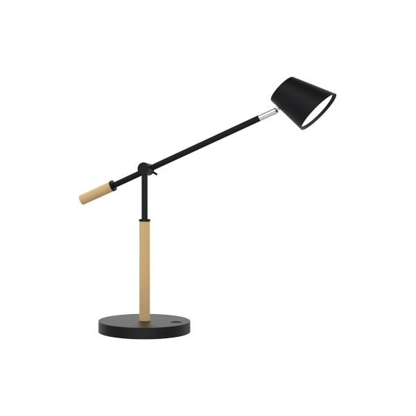 Unilux LED-Schreibtischlampe VICKY, schwarz/buche, mit Standfuß, dimmbar