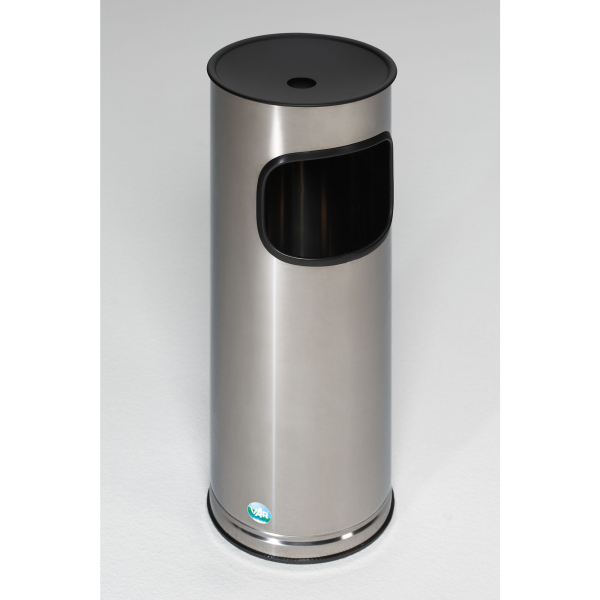 Abfallsammler/Ascher H 61 K. Der Ascheraufsatz ist bei allen Ausführungen schwarz beschichtet. Mit Aluminiumauffangschale für Zigarettenabfall. Bodenschonender Kantenschutz.