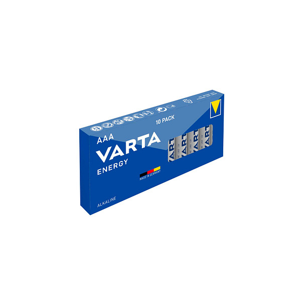 Entdecken Sie die leistungsstarken Batterie VARTA Energy AAA / Micro / LR03 mit einer Spannung von 1,5 Volt! Die VARTA Batterien der Energy Reihe bieten ein sehr gutes Preis-Leistungs-Verhältnis sowie langanhaltende Energie für Geräte mit einem konstant niedrigen Energieverbrauch wie Fernbedienungen, Wanduhren, Radios etc. VARTA Energy Batterien werden in Deutschland hergestellt und bieten eine Lagerfähigkeit von 5 Jahren.