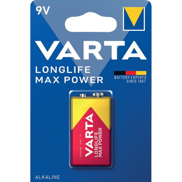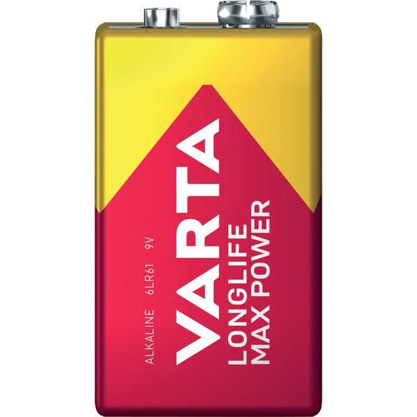 VARTA Batterie Longlife Max Power, 9V-Block / E-Block / 6LR61, 9 Volt