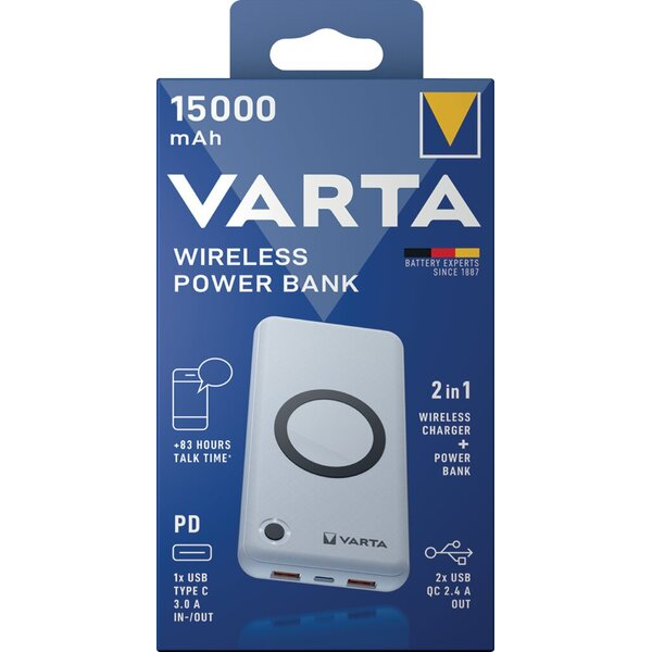 Die VARTA Wireless Powerbank überzeugt mit fortschrittlicher Advanced Safety Technology und der Fähigkeit des Pass-Through-Ladens, was bedeutet, dass Sie gleichzeitig die Powerbank und ein angeschlossenes Gerät aufladen können. So sind Sie immer bestens gerüstet für Ihre Abenteuer.