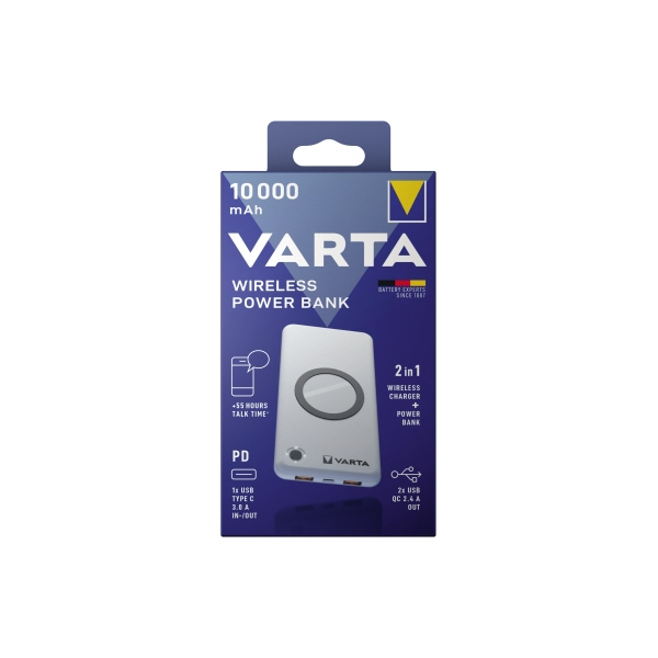 VARTA Powerbank WIRELESS 57913 101 111, silber, 10000 mAh