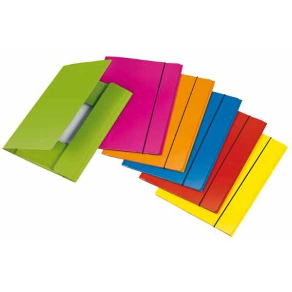 Veloflex Eckspannmappe VELOCOLOR 4442300, A4 sortiert (gelb/hellrot/orange/hellgrün/hellblau/pink) Karton glanzkaschiert 350g, mit 3 Einschlagklappen