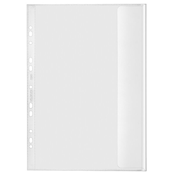 Veloflex Prospekthüllen 5345000 Abheftrand, Eurolochung, mit Klappe an der langen Seite, A4 transluzent genarbt, rechts offen mit Klappe, 0,13mm