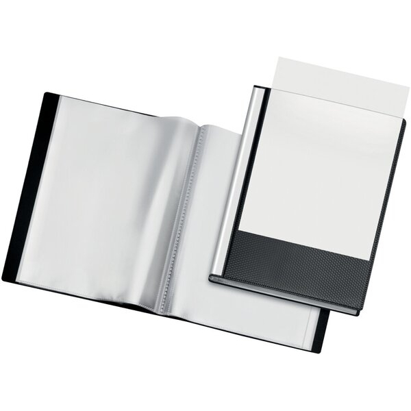 | Vorderdeckel und Rücken mit ganzseitigen Klarsichttaschen, dokumentenechte PP-Hüllen | |