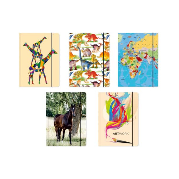 Die Gummizugmappe verfügt über drei praktische Einschlagklappen, die zusätzlichen Platz für lose Blätter bieten und somit Ihre Dokumente sicher an ihrem Platz halten. Die bunten Motive sorgen für eine ansprechende Gestaltung und machen das Arbeiten mit Ihren Unterlagen viel angenehmer.