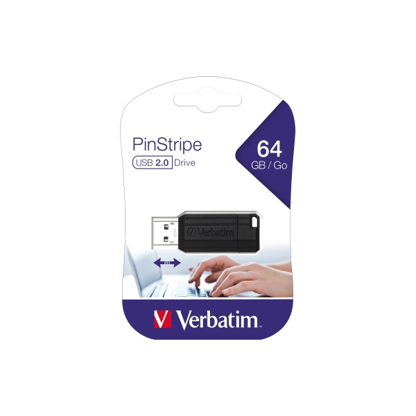 Verbatim USB-Stick Pinstripe 49065, schwarz, USB 2.0, 64 GB