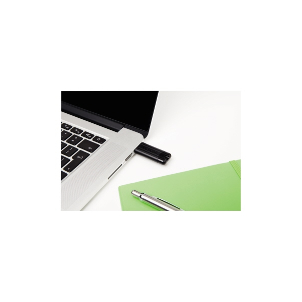 Entdecken Sie den stilvollen USB-Stick Pinstripe 49318 von Verbatim in elegantem Schwarz. Mit seinem versenkbaren "Nadelstreifen"-Design und der praktischen Öffnung für einen Schlüsselanhänger ist dieser USB-Stick nicht nur funktional, sondern auch ein echter Blickfang.