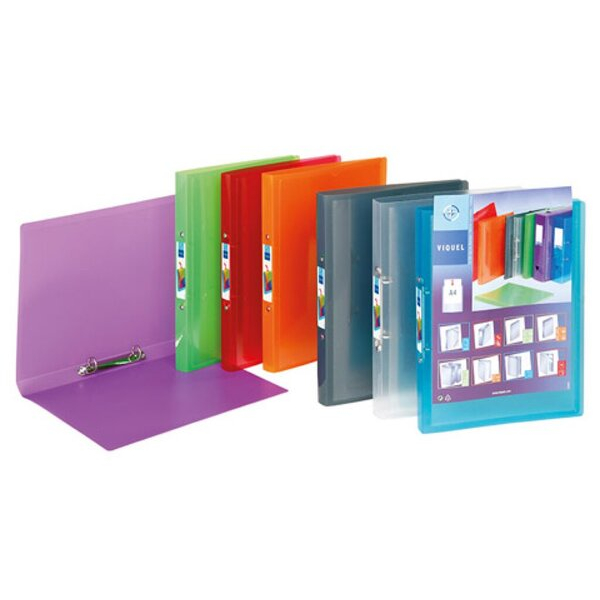 Viquel Präsentationsringbuch PROPYGLASS V602139, A4 2 Ringe 20mm Ring-Ø Polypropylen (PP), 1 Außentasche, 7 Farben sortiert-transparent