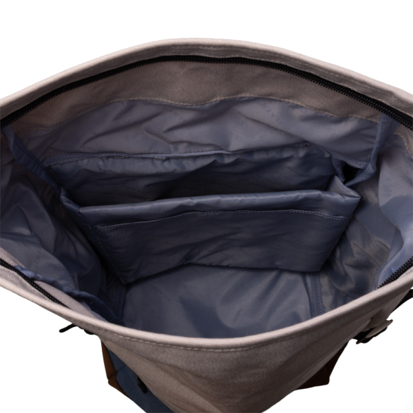 Der Schulrucksack Roll Up Two in der trendigen Farbkombination popcorn/azure ist ein flexibler Begleiter für Schule, Freizeit oder Uni. Dank des rollbaren Verschlusses lässt sich das Hauptfach von 23 auf bis zu 30 Liter erweitern. Die gerollte Zippöffnung mit Steckschließe sorgt für sicheren Verschluss und schnellen Zugriff. Ein integriertes Laptopfach schützt technische Geräte zuverlässig. Ergonomisch geformte, gepolsterte Schulterriemen bieten angenehmen Tragekomfort – auch bei voller Beladung. Eine praktische Zipptasche an der Front, Kompressionsriemen zur Volumenanpassung und zwei Seitentaschen für Trinkflaschen machen den Rucksack besonders alltagstauglich. Das wasserabweisende Material schützt den Inhalt bei leichtem Regen. Maße: 45–64 x 29 x 17 cm