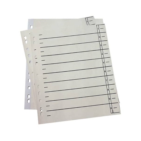 Entdecken Sie die hochwertigen Trennblätter 9511108100 von Wekre, die perfekt für Ihre organisatorischen Bedürfnisse sind. Diese Trennblätter sind aus 230 g/qm Kraftkarton (RC) gefertigt und bieten eine ausgezeichnete Stabilität und Langlebigkeit.