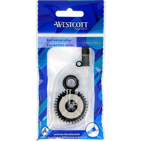 Erleben Sie die Vorteile der Korrekturroller Korrekturroller E-743917 00 Sideway von Westcott, der Ihnen mit seiner seitlichen Abrolltechnik eine einfache und effektive Lösung für Ihre Schreibfehler bietet. Die blickdichte Korrekturschicht sorgt dafür, dass Ihre Korrekturen unauffällig und sofort überschreibbar sind, was Ihnen präzise Ergebnisse garantiert.