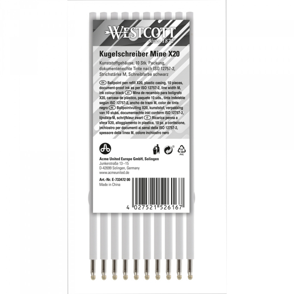 Überzeugen Sie sich selbst von der Qualität der Kugelschreibermine X20 von Westcott und bestellen Sie noch heute Ihre Packung!