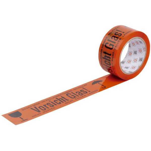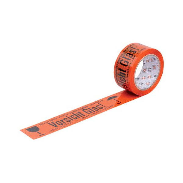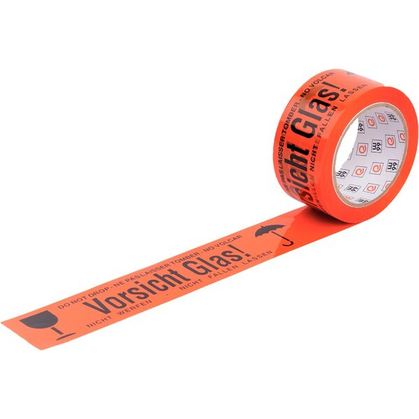 Signalpackband WIHE-lux 400.082, Vorsicht Glas, 50mm x 66m, orange/schwarz