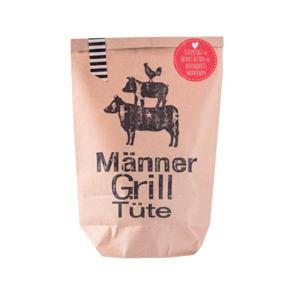 1x Untersetzer mit Grillgebet, Magnet Flaschenöffner,handgefertigter Grillanzünder, Rezeptkarte für eine Steakmarinade, Probiermesser und Gabel aus Holz