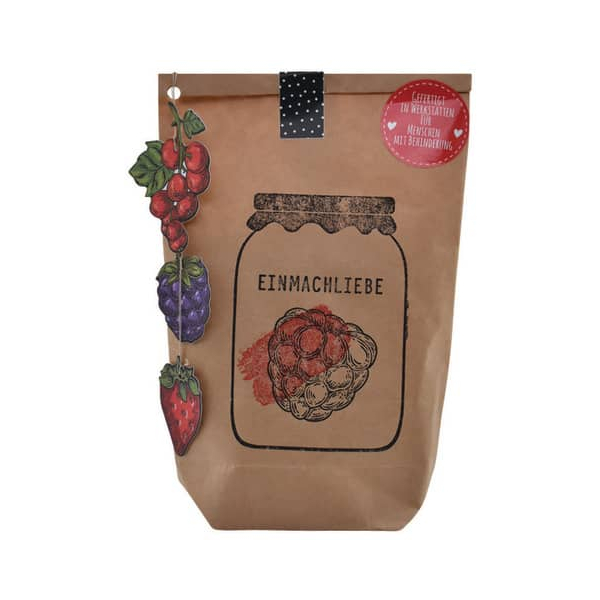 Entdecken Sie die zauberhafte Wundertüte "Einmachliebe" von WUNDERLE, die nicht nur Ihre Küche bereichert, sondern auch ein Zeichen von sozialer Verantwortung setzt. Unsere Wundertüten werden von einzigartigen Menschen in Werkstätten für Menschen mit Behinderung mit ganz viel Liebe handgestempelt, befüllt und verschlossen. Durch diese Handanfertigung erhalten die Papiertüten ihre ganz persönliche Note, jede einzelne hat eine ganz eigene Handschrift.