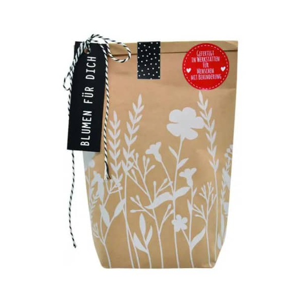 WUNDERLE präsentiert die Wundertüte "Blumen für Dich" – eine zauberhafte Geschenkidee, die Freude und Farbe in jeden Garten bringt. Unsere Wundertüten werden von einzigartigen Menschen in Werkstätten für Menschen mit Behinderung mit ganz viel Liebe handgestempelt, befüllt und verschlossen. Durch diese Handanfertigung erhalten die Papiertüten ihre ganz persönliche Note, jede einzelne hat eine ganz eigene Handschrift.