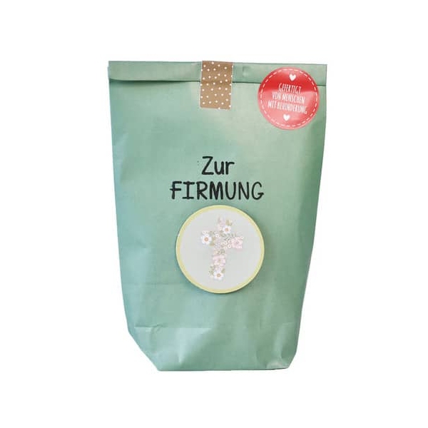 WUNDERLE präsentiert die zauberhafte Wundertüte 63623 "Zur Firmung", die mit viel Liebe und Sorgfalt in Werkstätten für Menschen mit Behinderung handgefertigt wurde. Jede Papiertüte ist einzigartig und erhält durch die handgestempelte Gestaltung eine persönliche Note, die ihr einen individuellen Charme verleiht.