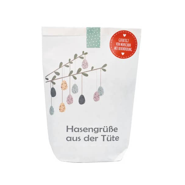 Die Wundertüte "Hasengrüße aus der Tüte" bringt den Frühling direkt zu Ihnen nach Hause. Mit charmanten Details, wie einem Zweiohr-Hasenstecker, einer Samentüte für eine grüne Wiese und Wachteleiern für die Dekoration, ist diese liebevoll gestaltete Tüte perfekt für Ostern. Egal, ob als Geschenk oder zur eigenen Freude – sie sorgt für eine frühlingshafte Atmosphäre.