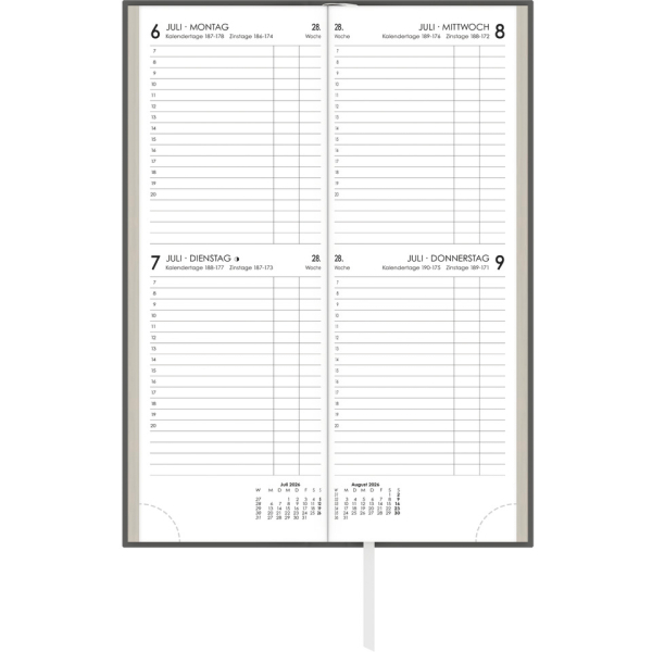 Zettler Buchkalender 801-0001, Vormerker, farbig sortiert, 2 Tage / 1 Seite, 10,4x29,6cm, 2026