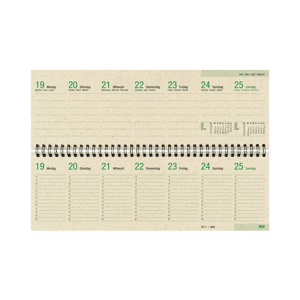 Zusätzlich profitieren Sie von einer praktischen Zweimonatsübersicht, die den aktuellen und den Folgemonat zeigt. Die Seiten sind aus umweltfreundlichem Graspapier gefertigt, das nicht nur nachhaltig ist, sondern auch eine rauere, jedoch leicht beschreibbare Oberfläche besitzt – perfekt, um Ihre Notizen mühelos einzutragen.