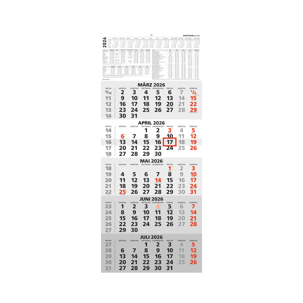 Soennecken Wandkalender 5096-26, 29,7x48,5cm (BxH), 2026 | ALPHA EDITION Wandkalender 160188, | Zettler Wandkalender 160383, | Zettler Wandkalender 160299, | rido/idé Wandkalender 7033420006, 30x62,5cm (BxH), 2026, 2026 | Glocken Wandkalender 5070242006, 30x55,5cm (BxH), 2026 | Güss Wandkalender 12-10, Langzeit-Jahresübersicht, 1Jahr / 1 Seite, 30x20cm (A4 quer), 2025-2029 |