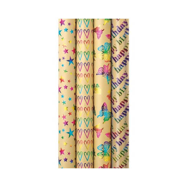Die Geschenkpapierrolle misst 1,5 Meter in der Länge und 70 cm in der Breite, sodass Sie genügend Material haben, um auch größere Geschenke stilvoll einzupacken. Jedes Stück hat ein ansprechendes Hotfoil-Print-Motiv in einem bunten Regenbogen-Design, das für Freude und gute Laune sorgt.