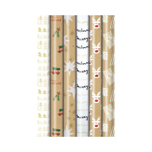 Das Geschenkpapier gehört zur Serie Glitter und besteht aus 100% Recyclingpapier. Es ist in einem bunten Design gehalten und bietet insgesamt 6 verschiedene Motive, die in einem praktischen Display sortiert sind. Mit einer Papiergrammatur von 80 g/m² ist es stabil und eignet sich hervorragend für all Ihre Geschenkverpackungen.