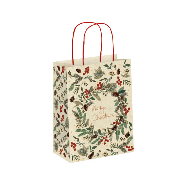 Die Geschenktasche verfügt über eine gedrehte Papierkordel, die nicht nur praktisch ist, sondern auch einen eleganten Akzent setzt. Sie eignet sich hervorragend für Geschenke an Freunde und Familie oder als stilvolle Verpackung für Ihre Weihnachtsüberraschungen.